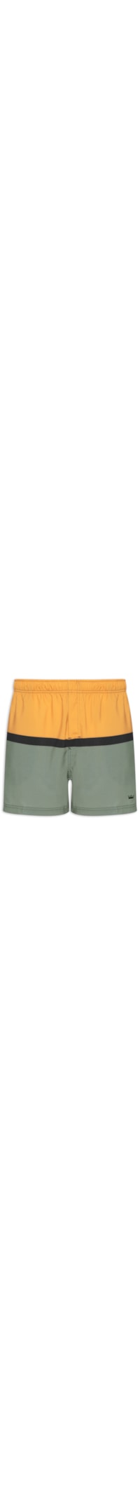 O short laranja é confeccionado em tecido leve sem elasticidade. A peça possui cintura média, cós elástico, bolsos frontais modelo faca, bolso posterior embutido com ilhós e tag da marca aplicada, comprimento curto e recortes em cores contrastantes.