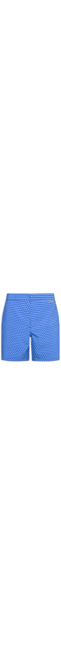 O short azul é confeccionado em tecido leve com baixa elasticidade. A peça solta ao corpo possui cintura média, cós com elástico aplicado na parte interna frontal e tag da marca aplicada em cor contrastante, dois bolsos frontais, bolso na parte posterior com fechamento por zíper, tag da marca aplicada na parte posterior em cor contrastante, estampa figurativa de coqueiros em cor contrastante, comprimento curto, acabamento pespontado em cor contrastante, e fechamento frontal por zíper e botão.