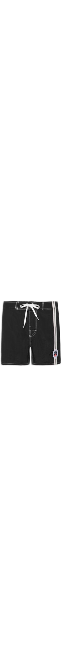 O short preto é confeccionado em tecido leve sem elasticidade. A peça solta ao corpo possui cintura média, cós com tag da marca aplicada na parte frontal, bolso posterior com fechamento por aba, ilhós e tag da marca, viés em cor contrastante na parte lateral com tag da marca bordada, acabamento pespontado em cor contrastante e fechamento frontal por amarração.
