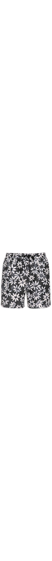o short Preto é Confeccionado Em tactel. A Peça Possui Cintura Média, Cós Com Cordão E Elástico Embutidos Para Ajuste, Bolsos Frontais Embutidos, Bolso Posterior Com Fechamento Por Velcro E Ilhós Aplicado, Estampa Floral Em Cor Contrastante, Forro Em Mesh, Comprimento Curto E Shape Solto.