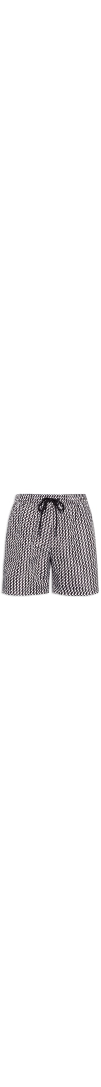 O short preto é confeccionado por tactel sem elasticidade. A peça solta ao corpo possui cintura média, elástico e cordão embutido no cós, bolsos frontais embutidos, tag da marca emborrachada aplicada na barra, bolso posterior embutido com aba sobreposta e tag da marca em cor contrastante, estampas abstratas em cor contrastante, fechamento por amarração frontal e comprimento curto.