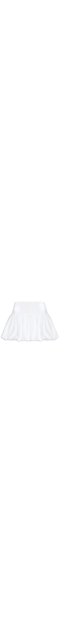 O short saia branco é confeccionado em tecido leve sem elasticidade. A peça solta ao corpo, modelo balonê, possui cintura alta, cós amplo com franzidos, comprimento mini e fechamento lateral por zíper invisível.