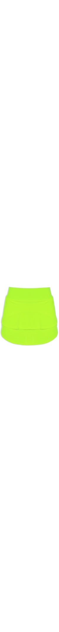 O short saia amarelo neon é confeccionado em malha de poliamida. A peça possui cintura alta, cós elástico anatômico, camadas sobrepostas na parte frontal e posterior, tag emborrachada da marca aplicada na parte posterior, comprimento curto, shape justo, caimento reto e acabamento pespontado.