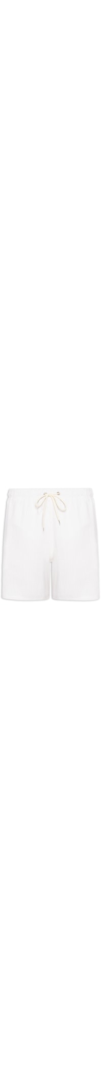 O short off white é confeccionado em anarruga com baixa elasticidade. A peça solta ao corpo possui cintura média, cós com elástico e cordão embutidos para ajuste e ilhoses aplicados, tag da marca emborrachada aplicada na parte frontal, bolsos frontais embutidos, bolso posterior com fechamento por velcro, comprimento curto, forro e tag da marca aplicada na parte posterior do cós.
