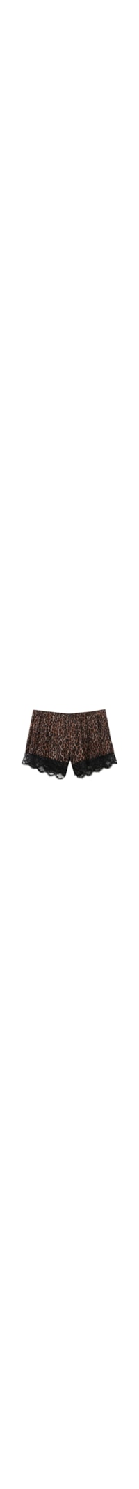 Short curto confeccionado em viscose com estampa animal print, finalizado com barra de renda na bainha.• Corte regular• A modelo tem 1,75 cm de altura e veste o tamanho P