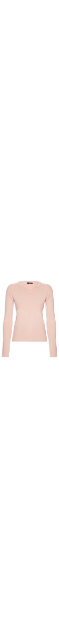 O suéter rosa é confeccionado em tricot com alta elasticidade. A peça justa ao corpo, possui gola V, mangas longas e acabamento canelado.