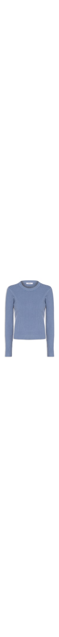 O suéter azul é confeccionado em tricot canelado com alta elasticidade. A peça justa ao corpo possui decote arredondado e mangas longas.
