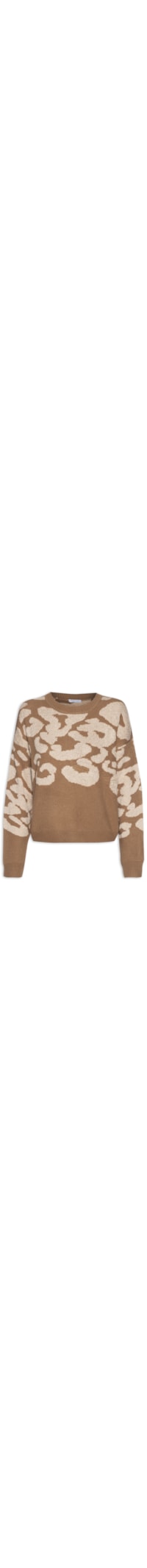 O suéter marrom é confeccionado por tricot com alta elasticidade. A peça solta ao corpo possui decote redondo, mangas longas com ajuste nos punhos, ombros estendidos e padronagem figurativa animal print em tom contrastante.