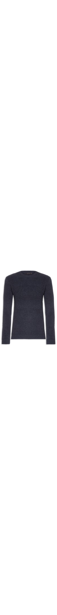 O suéter azul marinho é confeccionado em tricot com alta elasticidade. A peça solta ao corpo possui gola careca e mangas longas com ajuste nos punhos.