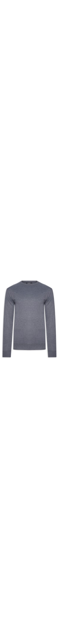 O suéter cinza é confeccionado em tricot com alta elasticidade. A peça solta ao corpo possui gola careca, mangas longas e acabamento canelado.