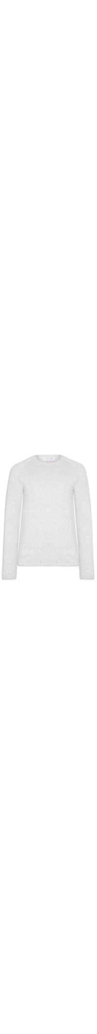 O suéter cinza é confeccionado em tricot com média elasticidade. A peça solta ao corpo possui gola careca, mangas longas com ajuste nos punhos e tag da marca na parte frontal.