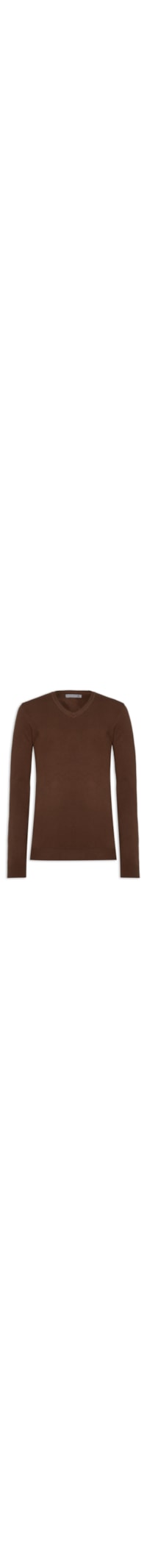 O suéter marrom é confeccionado em tricot com média elasticidade. A peça solta ao corpo possui decote V, mangas longas e acabamento canelado.