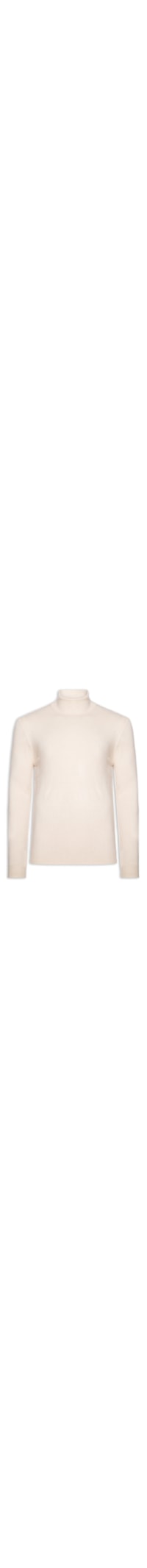 O suéter bege é confeccionado em tricot com alta elasticidade. A peça justa ao corpo possui gola alta, mangas longas e acabamento canelado na gola, mangas e barra.
