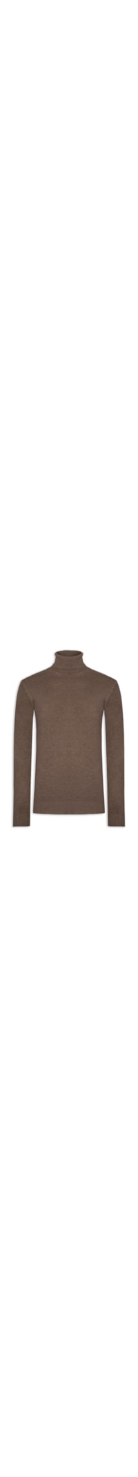 O suéter marrom é confeccionada em tricot com alta elasticidade. A peça justa ao corpo possui gola alta, mangas longas e acabamento canelado.