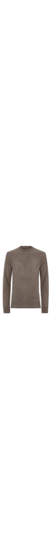 O suéter marrom é confeccionado em tricot com alta elasticidade. A peça solta ao corpo possui gola careca, mangas longas e acabamento canelado na gola, punhos e barra.