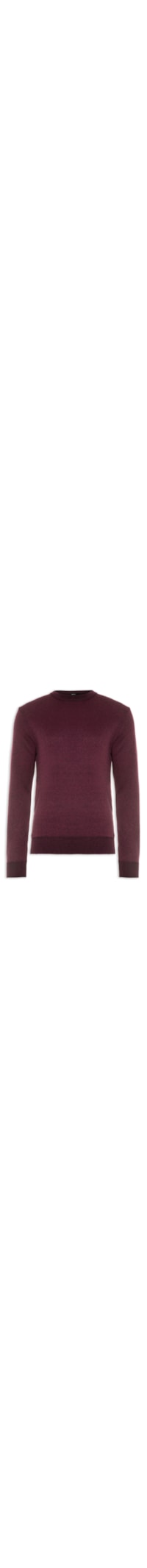 O suéter vinho é confeccionado em tricot leve. A peça possui gola redonda canelada, mangas longas, trama com fios mesclados de tom contrastante, acabamento canelado e shape solto.