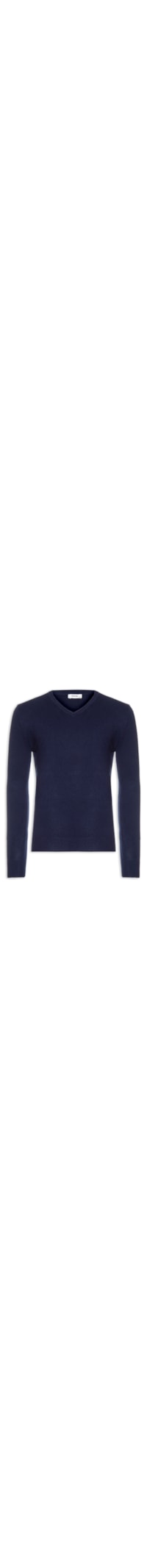 O suéter azul marinho é confeccionado em tricot com superfície texturizada e com alta elasticidade. A peça solta ao corpo possui gola V, mangas longas e acabamento canelado.
