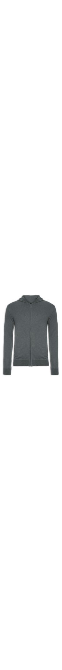 O suéter cinza é confeccionado em tricot leve. A peça possui capuz aplicado, mangas longas com punhos canelados, bolsos frontais, bolsos internos, barra canelada, shape solto e fechamento frontal zíper.
