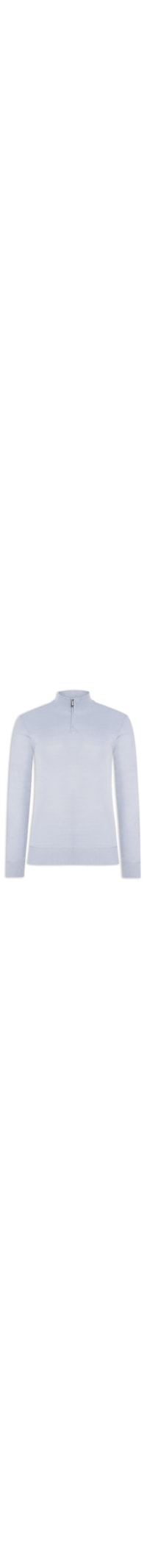 O suéter cinza é confeccionado em malha com alta elasticidade. Apeça solta ao corpo possui gola alta com zíper aplicado, mangas longas e acabamento canelado.