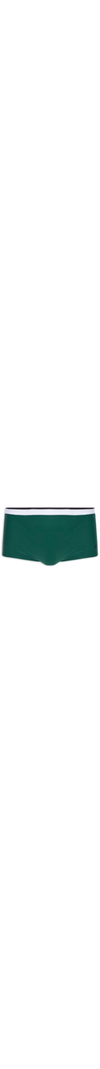 A sunga verde é confeccionada em malha leve de média elasticidade. A peça possui cintura média, cós com elástico e cordão embutido para amarração frontal, recortes superiores de cores contrastantes, logo da marca bordado na parte frontal, recortes laterais na cor preta e forro.