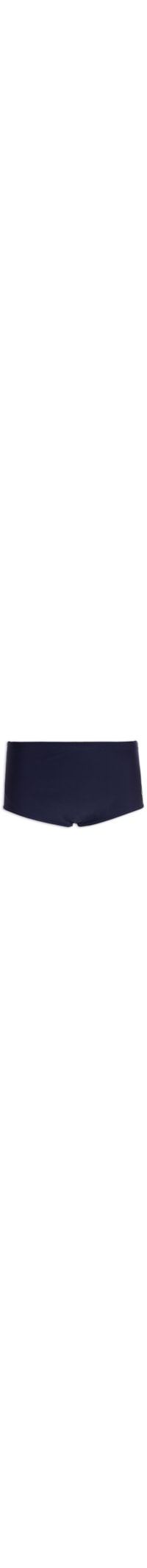 A sunga azul é confeccionada em malha de poliamida. A peça possui cós elástico com cordão embutido na parte interna para ajuste, frontal com logo da marca bordado, forro e acabamento pespotando.