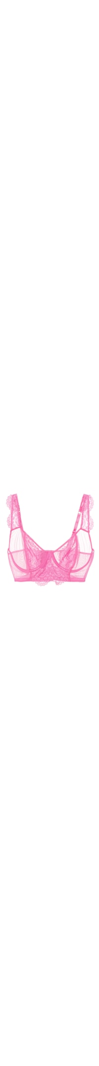 O sutiã rosa é confeccionado em tule. A peça possui decote V, alças médias reguláveis com aplicação de renda, aplicação de renda na parte frontal, aro de sustentação embutido, shape justo, caimento reto, acabamento pespontado e fechamento posterior por colchetes reguláveis.