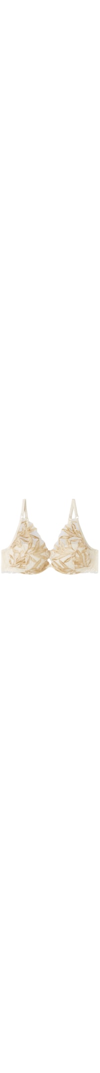 Selecione o tamanhoSutiã balconette Elena, confeccionado com um bonito bordado que apresenta um elegante motivo de folhas douradas e acabamentos em cetim. As copas alongadas na direção dos ombros têm um efeito triangular e oferecem excelente suporte. Contorno do tórax em renda elástica.