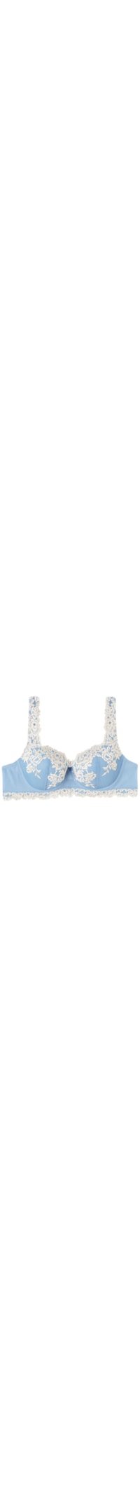 Sutiã balconette Sofia com copas levemente almofadadas e aro envolvente que acomoda e sustenta o busto. Confeccionado em renda elegante e refinada, disponível nas variantes bicolor ou tom sobre tom. O contorno do tórax é forrado com tule para garantir uma melhor aderência ao corpo. As alças são ajustáveis na parte posterior. Nos tamanhos maiores, o contorno do tórax é mais alto e a copa inclui um suporte adicional para melhor acomodar e sustentar o busto. É um modelo que oferece ótimo apoio e realça o decote, arredondando as formas para um estilo feminino e sensual.