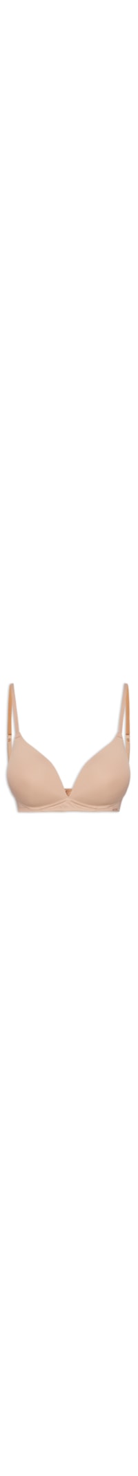 O sutiã bege é confeccionado em malha com alta elasticidade. A peça possui decote meia taça, alças finas com regulagem, tag da marca bordada na parte frontal, bojo e fechamento posterior por colchetes.