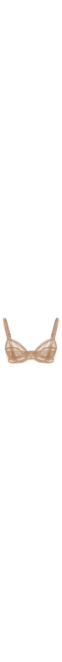 O sutiã bege é confeccionado em renda com baixa elasticidade. A peça modelo meia taça possui aros embutidos, alças médias ajustáveis, caimento justo ao corpo, recorte no busto, transparência e fechamento posterior por extensor com colchetes.