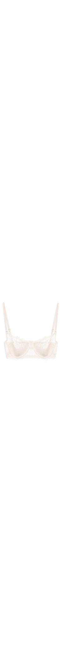 O sutiã off white é confeccionado em renda com baixa elasticidade. A peça modelo meia taça possui aros embutidos, alças finas ajustáveis, caimento justo ao corpo, recorte no busto, transparência e fechamento posterior por extensor com colchetes.