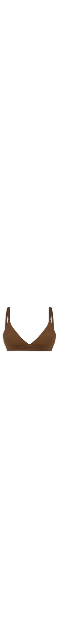 O sutiã marrom é confeccionado em malha de poliamida com média elasticidade. A peça justa ao corpo possui decote V e alças finas reguláveis.
