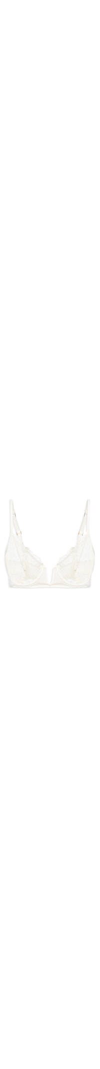 O sutiã branco é confeccionado em renda com média elasticidade. O sutiã modelo meia taça, possui alças finas com ajuste, aro embutido na parte inferior do busto, recorte frontal vazado, alta transperência e fechamento posterior por colchete.