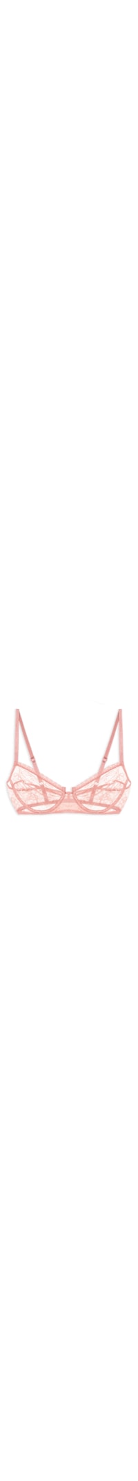 O sutiã rosa é confeccionado por renda com média elasticidade. A peça possui decote meia taça, alças finas com ajuste, aro embutido na parte inferior do busto,, alta transparência, tag da marca metalizada aplicada na barra e fechamento posterior por colchete.