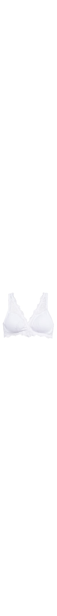 O sutiã branco é confeccionado em renda. A peça possui decote V, alças médias reguláveis, bojo removível, meio forro, detalhes de transparência, shape justo, caimento reto, acabamento elástico e fechamento posterior por colchetes.