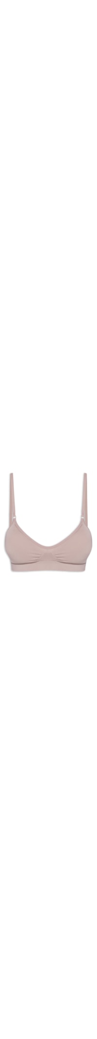 O sutiã bege é confeccionado em malha leve de alta elasticidade. A peça possui decote em U, alças finas com regulagem e removíveis na pare posterior por encaixe, detalhe franzido na parte frontal, laterais com detalhe canelado, barra elástica, bojo removível e forro.