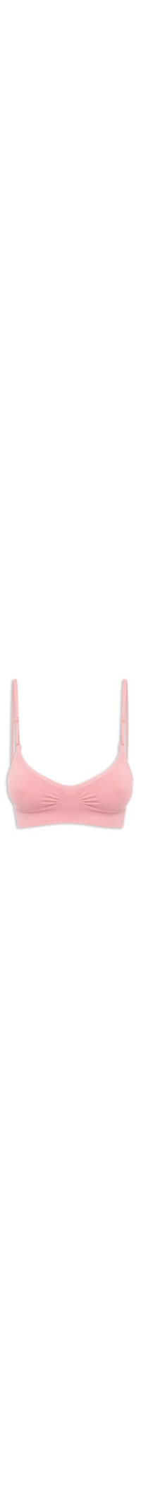 O sutiã rosa é confeccionado em malha de poliamida. A peça de modelo triângulo possui decote U, alças finas reguláveis e removíveis, shape justo, recorte frontal com leve franzido e acabamento elástico.