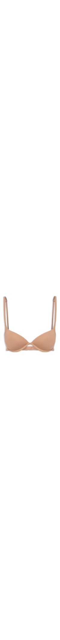 O sutiã bege é confeccionado em malha de poliamida com alta elasticidade. A peça justa ao corpo de modelo push up possui decote coração, alças finas ajustáveis, enchimento em espuma e fechamento ajustável por colchetes.