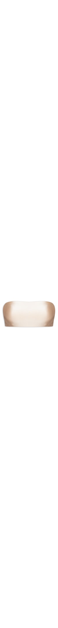 O sutiã dourado é confeccionado em microfibra acetinada de média elasticidade. A peça de modelo tomara que caia possui decote reto, tag da marca aplicada na parte posterior, acabamento com elástico embutido, forro e bojo removível.