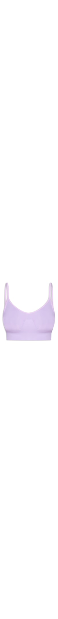 O sutiã lilás é confeccionado em microfibra de média elasticidade. A peça possui decote U, alças finas, recorte frontal anatômico com efeito franzido, sem bojo, acabamento canelado e comprimento cropped*