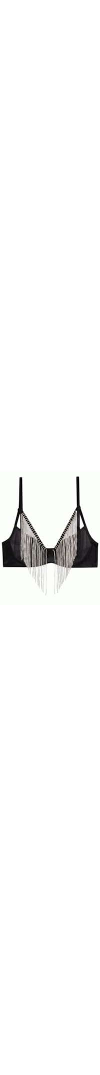 Sutiã confeccionado em tule macio e brilhante, com acabamentos em veludo. Possui tiras laterais ajustáveis em elástico macio com efeito de veludo, adornado com franjas de strass.