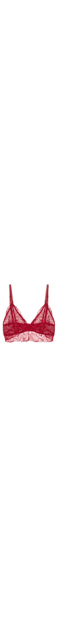 O sutiã vermelho é confeccionado em renda com média elasticidade. A peça de modelo triângulo possui decote V, alças finas reguláveis, tag da marca aplicada na parte posterior, transparência e fechamento posterior por colchetes.