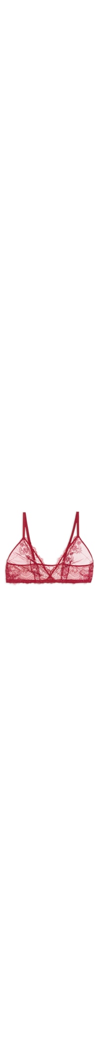 O sutiã vermelho é confeccionado por renda com média elasticidade. A peça justa ao corpo possui decote V, alças finas com ajuste, elástico embutido na barra, detalhes bordados na parte frontal, forro e alta transparência.