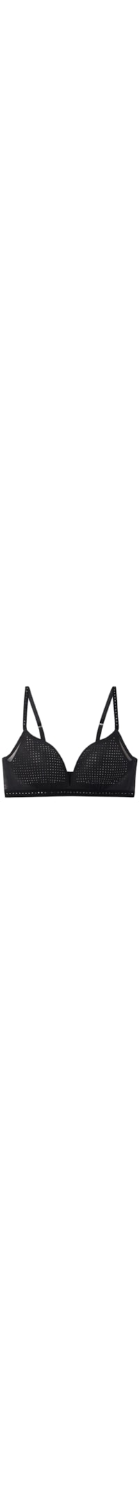 Sutiã triângulo Tiziana em tule macio, com bojo adornado com micro strass na cor hematite. Possui acabamento em elástico suave com efeito aveludado e aplicação de strass na mesma tonalidade. Perfeito para ser usado à mostra sob uma camisa aberta ou uma blusa transparente. Ideal para quem busca um sutiã levemente acolchoado com efeito natural.