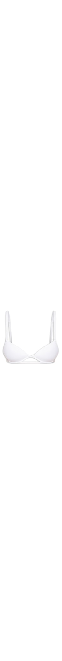 O sutiã branco é confeccionado em malha de poliamida. A peça possui decote meia taça, aros de sustentação, alças finas reguláveis e removíveis, shape justo, acabamento pespontado e fechamento posterior por elástico.