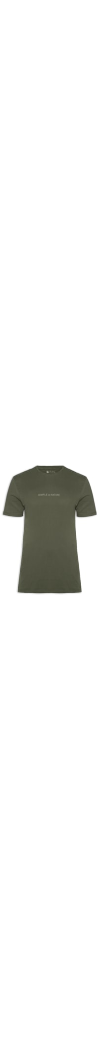 A t-shirt verde é confeccionada por malha de algodão com média elasticidade. A peça solta ao corpo possui gola careca com acabamento canelado, mangas curtas, estampas em escrita aplicada na altura do tórax frontal em cor contrastante e logo da marca aplicado na altura da gola posterior.
