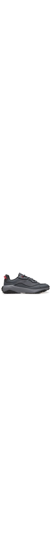 O tênis cinza é produzido em material têxtil. A peça possui bico arredondado, recortes frontal e posterior sobrepostos em material sintético, recortes laterais com superfície texturizada, recortes frontais e laterais com aplicação de vivo na cor preta, parte posterior com tira de gorgurão com detalhe de frisos em cores contrastantes, lingueta com o nome da marca aplicado em relevo, palmilha macia com nome da marca em cor contrastante, entressola em EVA com superfície texturizada e detalhe de nome da marca em relevo na parte posterior, solado tratorado emborrachado e fechamento superior por cadarço.