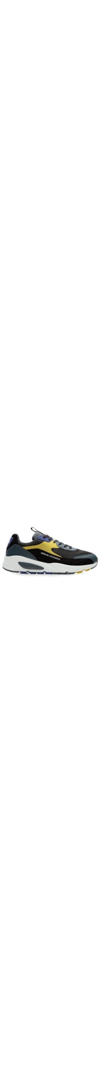 O tênis preto é produzido em mesh. A peça possui cano baixo acolchoado, bico arredondado, recorte frontal e posterior em material sintético de cor contrastante, recorte lateral e posterior com superfície aveludada de mesma cor, recortes laterais com superfície aveludada de cor contrastante, nome da marca aplicado na lateral, recorte posterior sobreposto em borracha de cores contrastantes com logo da marca em relevo, lingueta acolchoada com puxador em gorgurão com logo da marca, entressola com linhas em baixo-relevo e recorte lateral de cor contrastante com logo da marca, solado emborrachado e fechamento superior por cadarço.