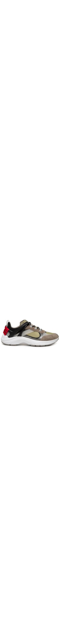 O tênis verde é produzido em lona. A peça possui bico arredondado, cano baixo acolchoado,, lingueta acolchoada com nome da marca aplicado, recortes em cores contrastantes em material sintético com superfície texturizada e em camurça, puxador em faixa de gorgurão na parte posterior, tag da marca emborrachada aplicada na parte posterior na cor vermelha, entressola com detalhes em relevo e nome da marca em alto-relevo na parte lateral e fechamento superior por cadarço.