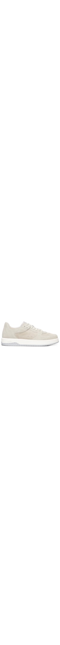 O tênis cinza é produzido por camurça. A peça possui bico arredondado, recortes sobrepostos à superfície, perfuros frontais e laterais, ilhóses laterais, lingueta acolchoada com tag da marca aplicada, nome da marca aplicado na parte posterior, forro acolchoado, palmilha macia com nome da marca na cor vermelha, entressola emborrachada com nome da marca em relevo na lateral, solado emborrachado com recortes vazados e fechamento superior por cadarço.